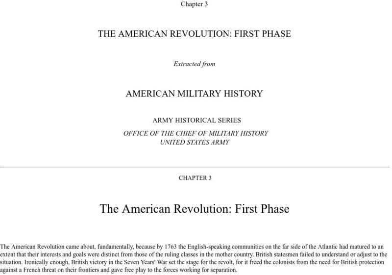 U.s. Army Center of Military History: The American Revolution: First Phase