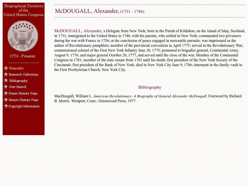 This site from the U.S. Congress provides a short biography of Alexander McDougall, a member of the Continental Congress who fought in the Revolutionary War.
