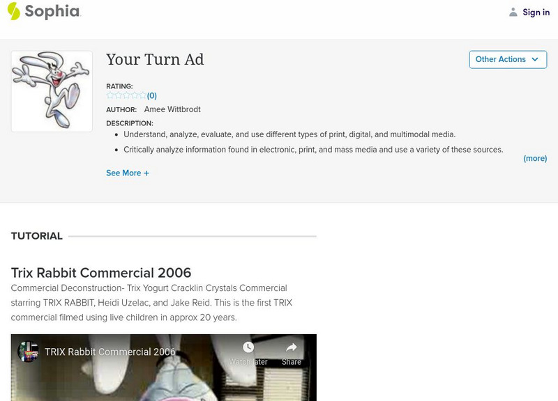 In this persuasive media lesson, students will engage in viewing a Trix cereal advertisement and then engage in the process of "deconstruction" to analyze the use of propaganda techniques to attract customers. Then students will choose...