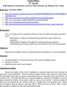 Here is a instructional activity which incorporates ingenious hands-on activities that simulate how many animals use camouflage as a survival technique. This instructional activity clearly outlines how to implement the activities and...