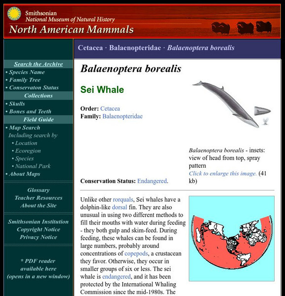 Unlike other rorquals, Sei whales have a dolphin-like dorsal fin. They are also unusual in using two different methods to fill their mouths with water during feeding - they both gulp and skim-feed. Learn more about the Balaenoptera...