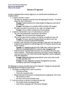 As middle and high schoolers experiment with their writing styles, it's easy to slip in a few accidental sentence fragments. After reading a full-page of information regarding how to identify and avoid sentence fragments, learners...