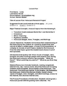 Learners research multiple aspects of WWII. In this Holocaust lesson, students will use several primary source documents to write a 3 page pater on subjects concerning WWII, such as Kristallnacht, Ethnic Cleansing and the Holocaust.