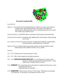 Students, after completing a Personal Learning Profile pre-test Survey, take a Personal Learning Profile pre-test. They explore personal interests, spiritual beliefs, strengths, needs, and habits. The questionnaire is completed on the...