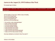 In this probability worksheet, 11th graders analyze how many students participate in four different sports using the probability of an event ocurring. There are 4 questions on this worksheet.