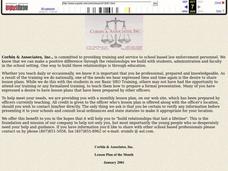 Young scholars watch and discuss a video that addresses the topic of dating violence. They view the video, answer discussion questions, take a quiz that evaluates their dating violence I.Q., and identify early warning signs of...
