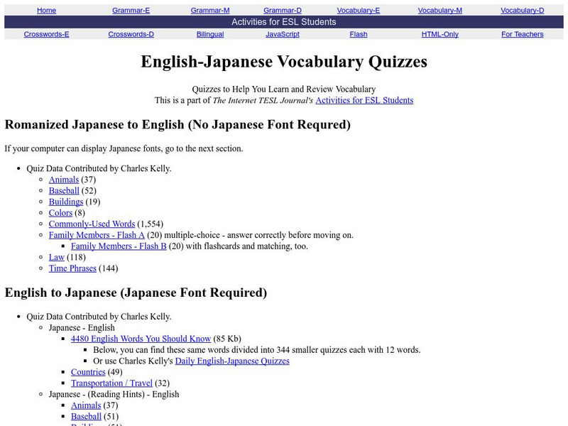 Internet Tesl Journal: Japanese English Vocab Quizzes