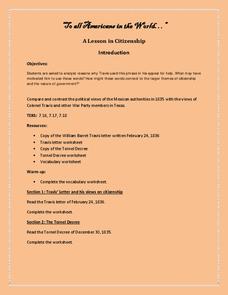 What does it mean to be an American citizen? Lieutenant Colonel Commander William Barret Travis believed that it meant honor to country first—even above one's own life. Middle and high schoolers read his final letters from the Alamo that...
