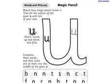Looking for a printing practice worksheet that synthesizes through spelling? This worksheet is a great practice tool for scholars new to printing the letter u. They first watch the "magic pencil," then try on their own. Consider creating...