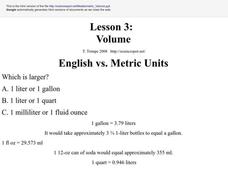 Pupils observe how to measure in metric units. In this investigative lesson students compare different units of volume to see how things are measured.