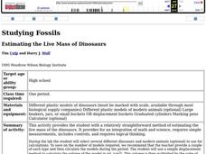 Students estimate the live mass of dinosaurs. Using dinosaur and modern animal models, students use simple displacement methods to calculate the volume of the models. They calculate the masses of each model. Students compare the...