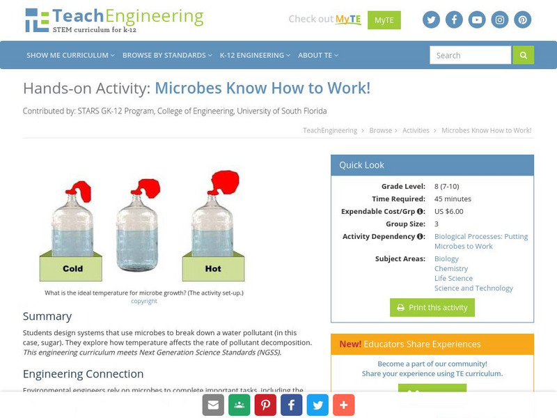 Students design systems that use microbes to break down a water pollutant (in this case, sugar). They explore how temperature affects the rate of pollutant decomposition.