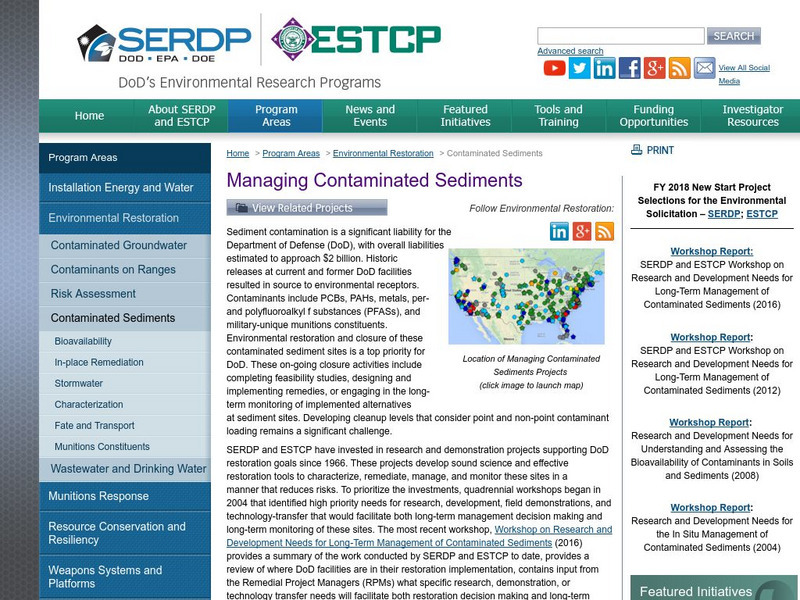 This resource is from the Strategic Environmental Research and Development Program (SERDP), an environmental research arm of the Department of Defense. It explains how sediment contamination has affected DoD facilities and what is being...