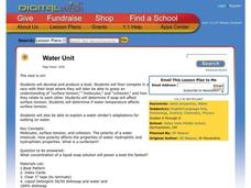 Learners examine water's properties. They participate in hands-on activities to show the properties of water.