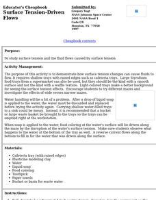 Help your classes feel like they can walk on water! An engaging inquiry-based lesson has young scholars experiment with different surface coatings. They make observations about their properties and how they relate to the surface tension...
