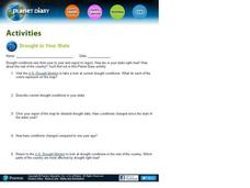 In this drought worksheet, students study the "US Drought Monitor" and complete 8 short answer questions on the causes and effects of drought.