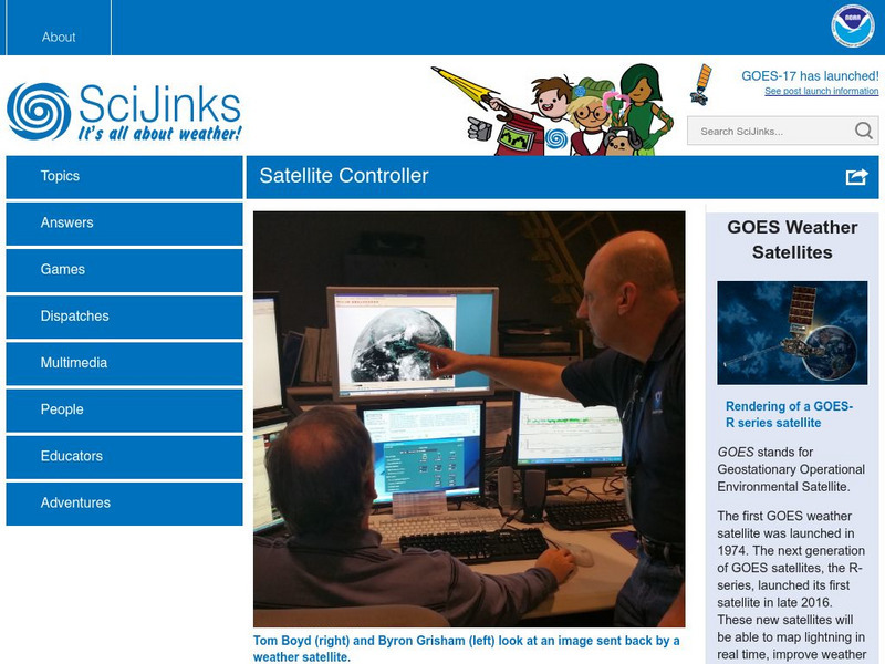 At this site from Dan's Wild Weather Page, you can find out about how satellites work in forecasting our weather and perform learning activities about satellites.