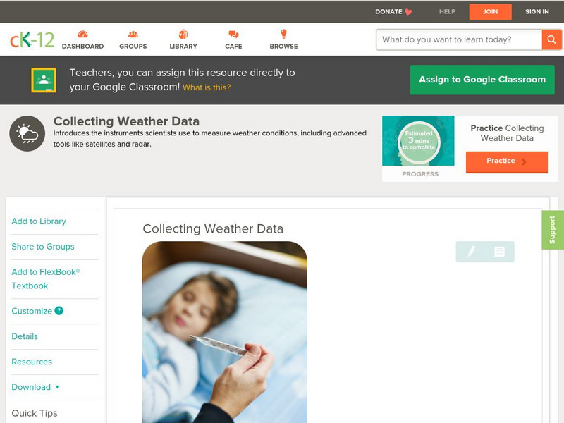 [Free Registration/Login may be required to access all resource tools.] Describes the various instruments that scientists use to measure weather conditions, including advanced tools like satellites and radar.