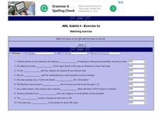 In this online interactive English vocabulary skills activity, high schoolers answer 10 matching questions which require them to fill in the blanks in 10 sentences. Students may submit their answers to be scored.