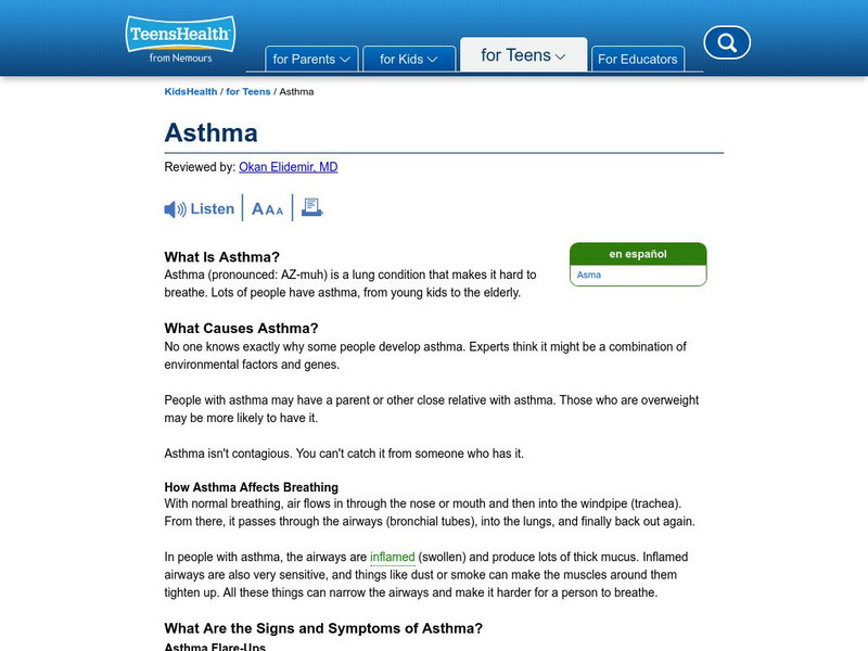 Organized into brief sections with general information, causes, and treatments, this article on asthma is a good introduction to the disease.