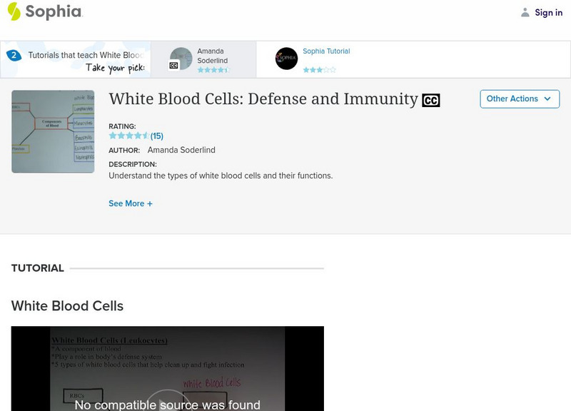 Sophia: White Blood Cells: Defense and Immunity: Lesson 1
