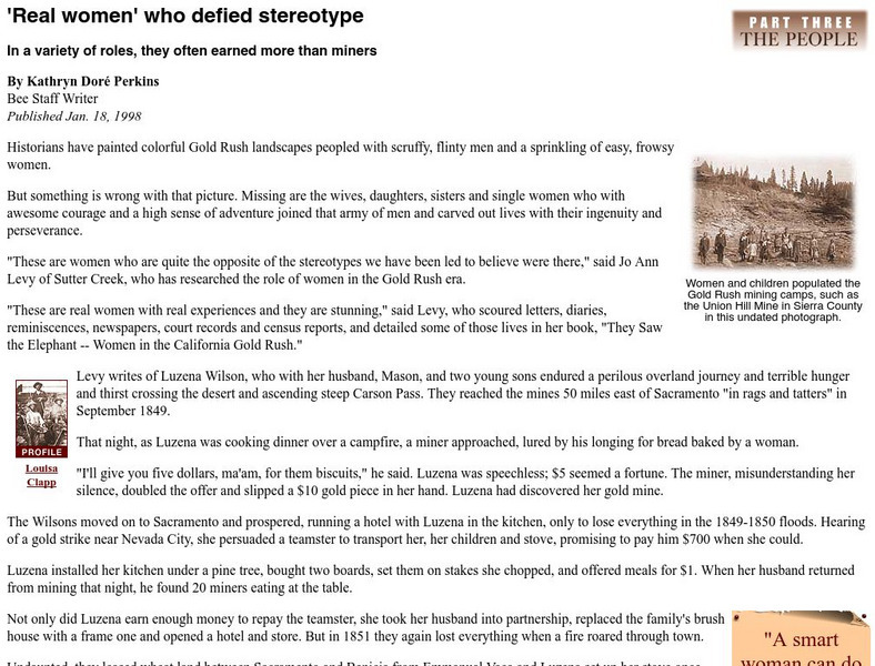 This CalGoldRush.com site discusses the role of the women during the gold rush in California. They served in a variety of roles and many made more than miners. This page tells their stories.