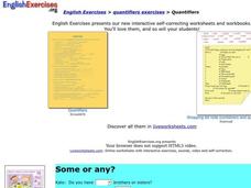 Many people, regardless of their age, confuse similar words. Little or few, much or many, some or any...the list goes on and on! Use this online resource to test your learners' ability to choose the correct quantifier. Consider...