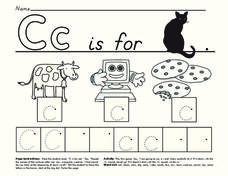In this printing practice learning exercise, students learn to form upper and lower case letters Cc. Students trace several examples before forming their letters in the boxes.