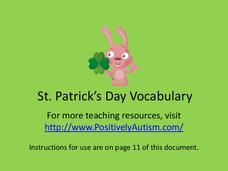 You can print these St. Patrick's Day vocabulary words out, show them as a slid-show, turn them into a holiday book, or make them into a game. There are nine different images for you to use with the special-needs or autistic children in...