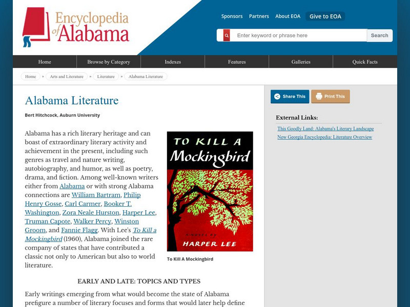 Encyclopedia of Alabama: Arts & Literature: Alabama Literature
