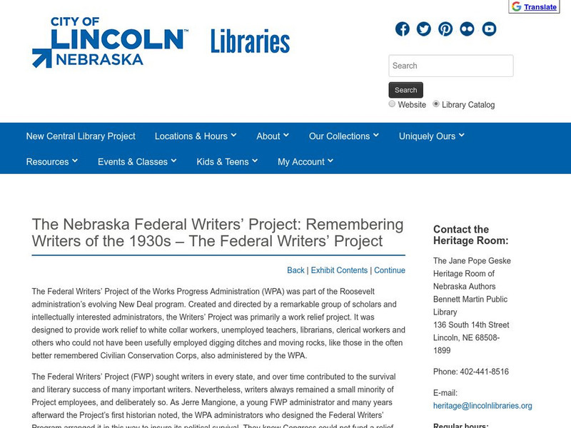 Lincoln City Libraries: Nebraska's Federal Writers Project