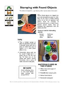 In this using everyday objects for artwork activity, student find objects with repetition and pattern, read and follow directions, use the patterns with tempera paint to create stamp art, and use the stamps to create a story. Learners...