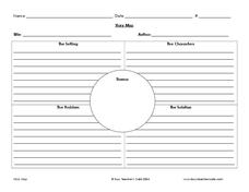 In this story map worksheet, students fill out a graphic organizer about a story. Students write about the story's characters, setting, problem, solution, and theme.