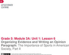Organizing Evidence and Writing an Opinion Paragraph: The Importance of Sports in American Society, Part II