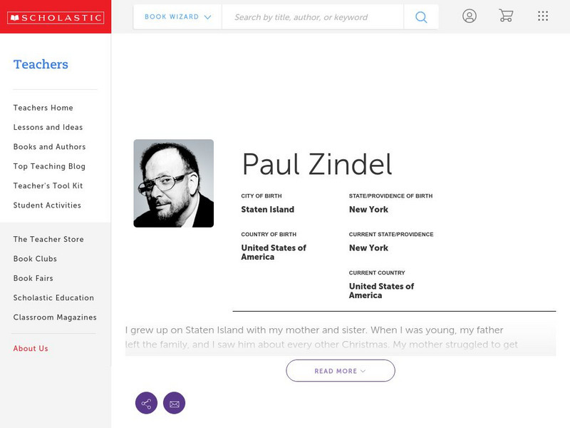 Scholastic's biography of Paul Zindel contains the author's memories of his early life, career choices, and reasons for writing: "I have to tell stories because that's the way the wiring went in."