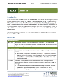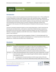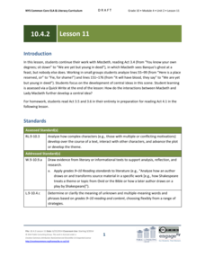 How do complex characters develop throughout a text? Pupils read Act 5.1 from Shakespeare's Macbeth, which depicts Lady Macbeth's descent into madness. Using discussion and writing exercises, scholars analyze how Shakespeare develops...