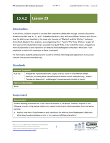 Withered, wild, and bearded are three adjectives that describe the Witches from Shakespeare's Macbeth. Scholars view paintings and discuss how different artists depict the witches. Pupils also complete a Quick Write to analyze Henry...