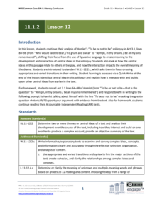 How does Shakespeare develop the main ideas in Hamlet? Using the resource, scholars continue analyzing the famous monologue from the play. They identify a central idea from the passage and write to explain how it relates to other central...