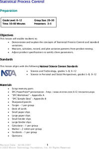 Students brainstorm items they have that use memory and view Statistical Process Control PowerPoint presentation. They complete Statistical Process Control Simulation/experiment then find the average, range and standard deviation in...
