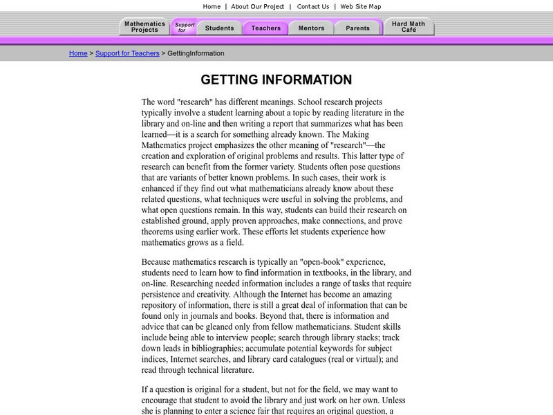 Making Mathematics: Mathematics Research Teacher Handbook: Getting Information