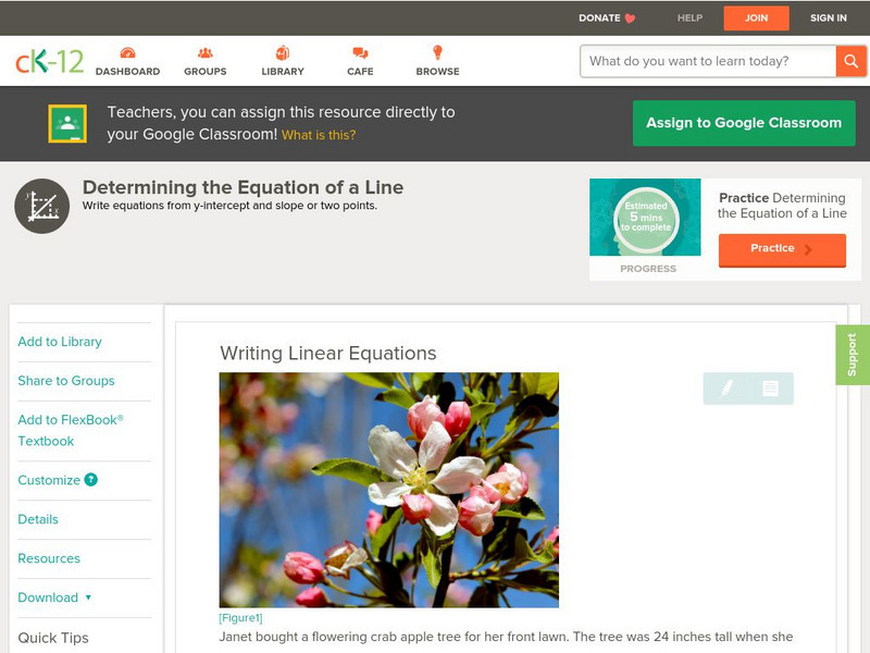 Ck 12: Algebra: Write an Equation Given the Slope and a Point