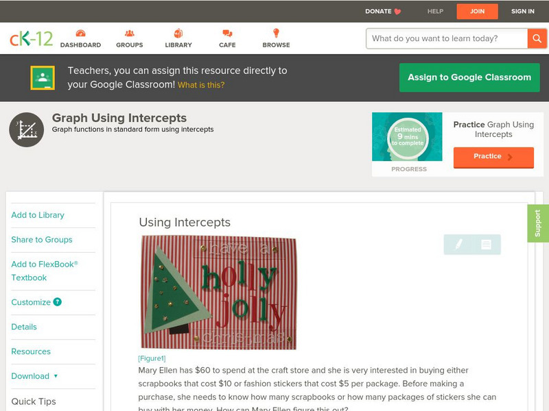 [Free Registration/Login may be required to access all resource tools.] Identify x and y-intercepts when problem solving.