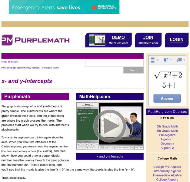 Purplemath: X and Y Intercepts