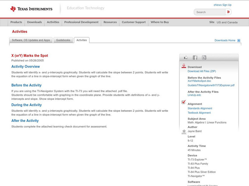 Texas Instruments: Introduction to Slope and Intercepts Partner Activity