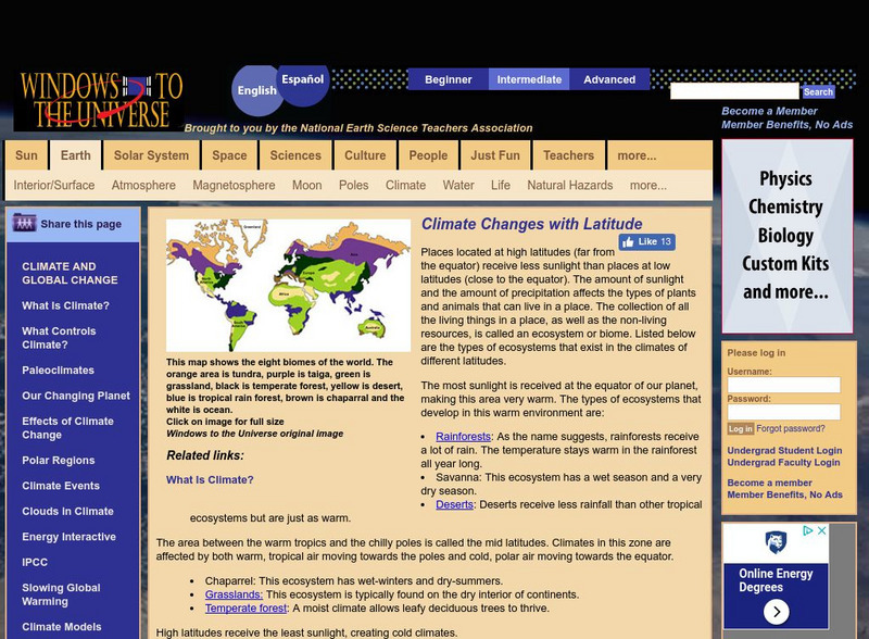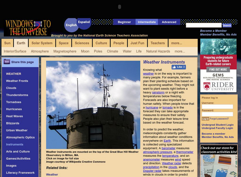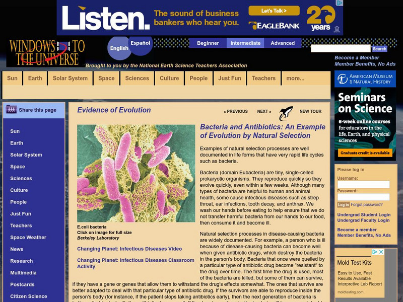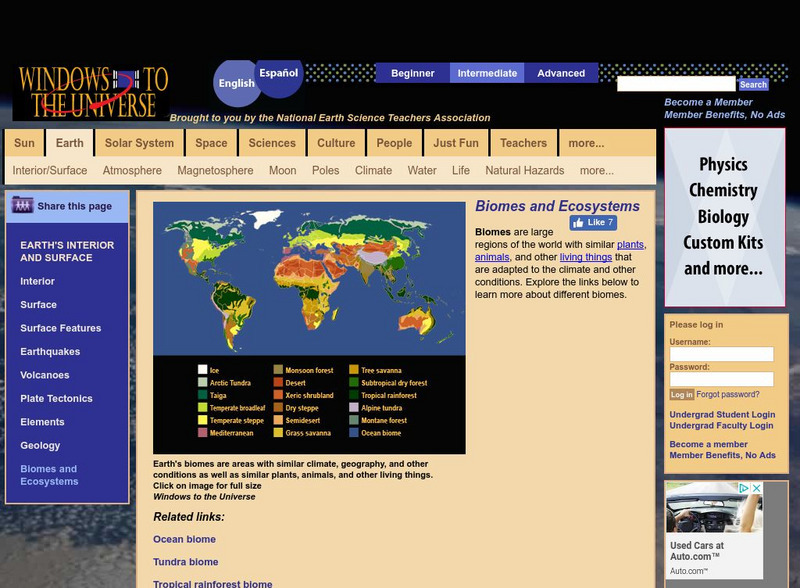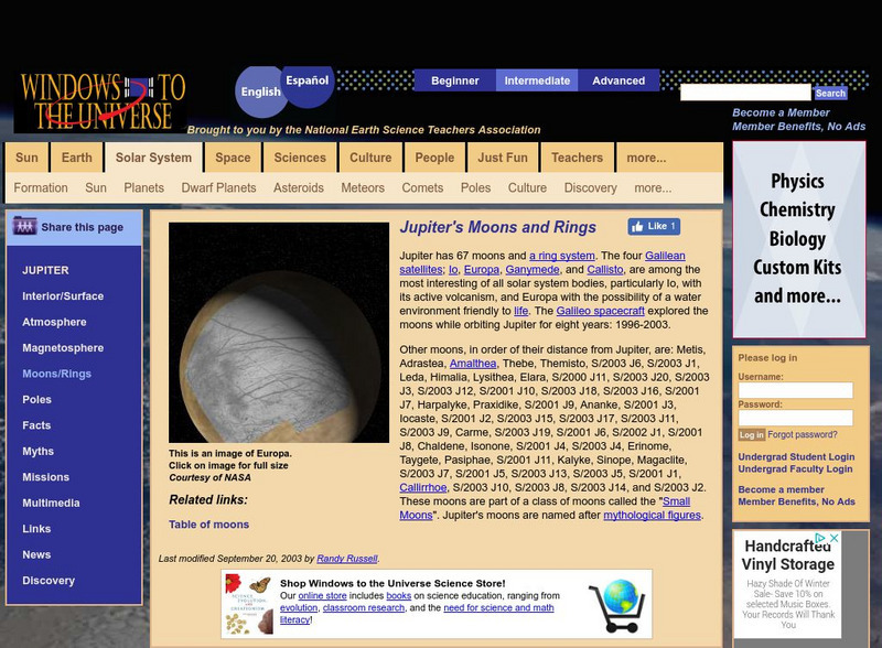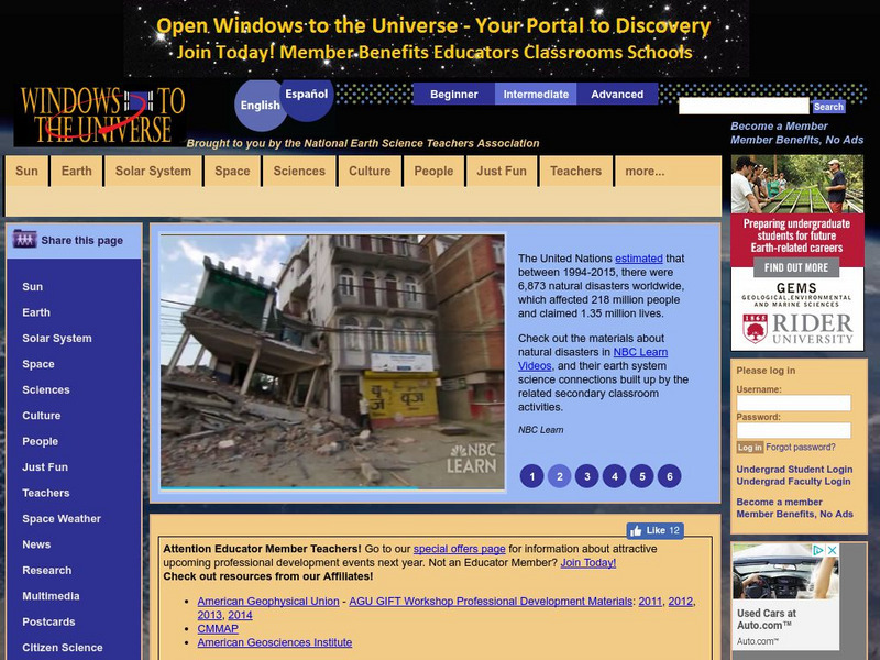 Windows to the Universe has developed an interactive resource about the earth, space, biological and physical sciences. Content includes information on our planet, the solar system, the universe, myths associated with space, space...