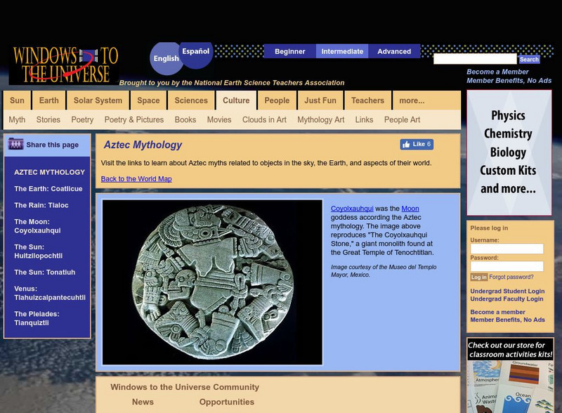 This article from the Windows to the Universe gives information on Mayan myths related to the Earth, rain, the Moon, Venus, Mars, and the Milky Way. There are illustrations and explanations of vocabulary. Choose from beginner to advanced...