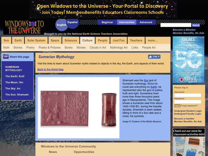 This page from Windows to the Universe allows one to learn about the Mesopotamia region of the world. Find out about the different myths that the Sumerians believed in.