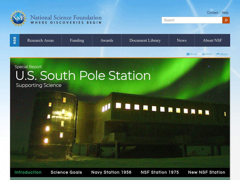 The resource explores the National Science Foundation's Amundsen-Scott South Pole Station. The interactive activity consists of a video tour, illustrations, related resources, and a webcam.