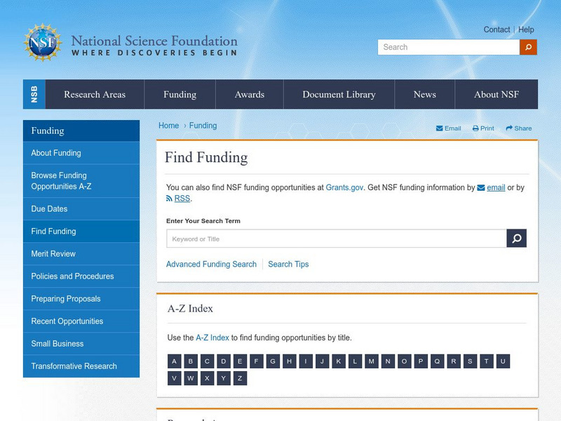 An A to Z listing of grants offered for research in science, math, and engineering.
