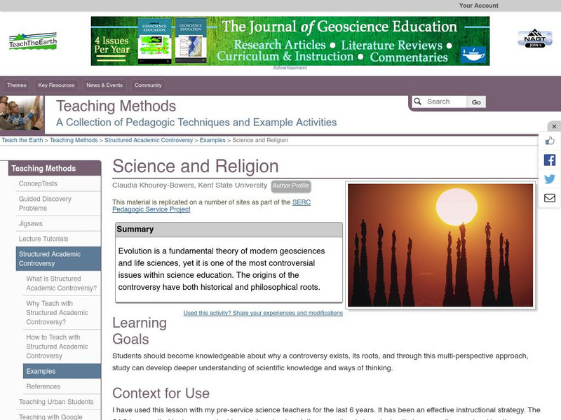A lesson using the strategy of structured academic controversy where students explore the roots of differing perspectives on evolution, In the process, they develop a deepened understanding of science and religion, and tolerance for...